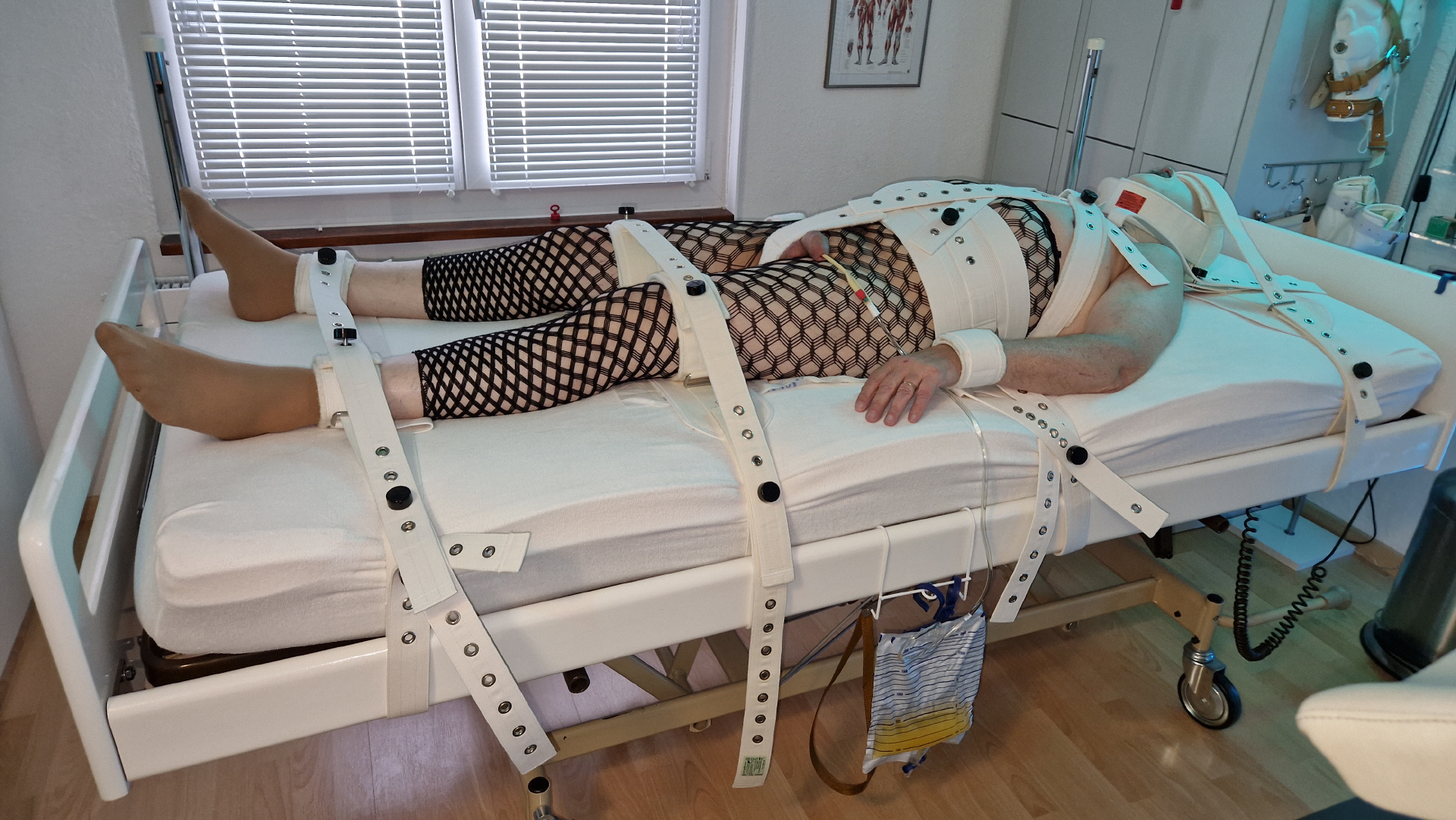 Ob als Patient oder Delinquent, der ruhig gestellt werden muss: Ich biete dir ab sofort dieses spezielle Erlebnis des Entzugs der Bewegungsfreiheit bis hin zur totalen Immobilisierung.